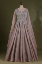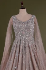 Be the first to review “Beige Sequins Embroidered Net Cocktail Gown with Pentagon Neck-JE3651” Cancel reply