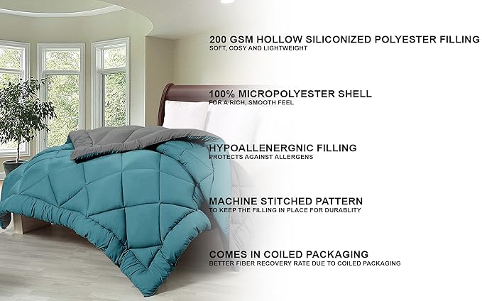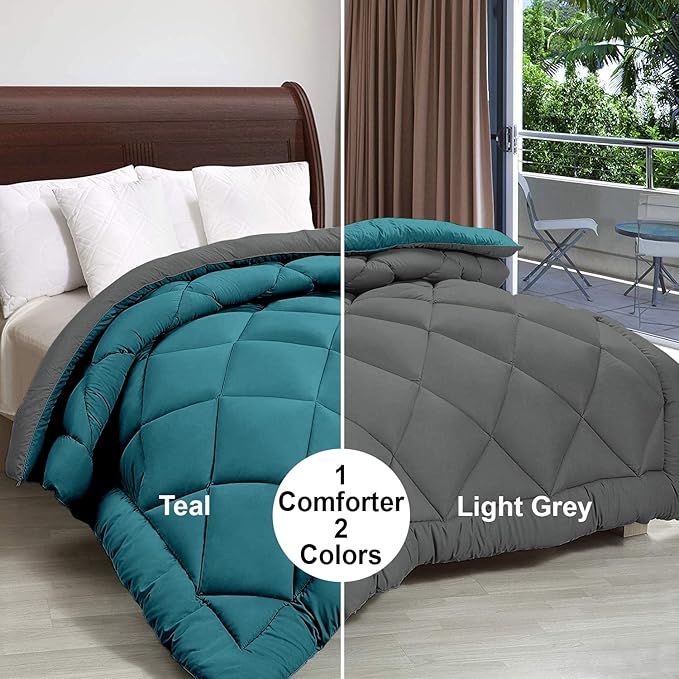 Cloth Fusion Reversible AC Comforter Set Double Bed 220 GSM,Soft Microfibre King Size Quilt Blanket for Winter(90×100 inches, Teal & Light Grey)