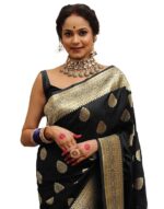 Be the first to review “Elegant Banarasi Saree Silk – Border & Allover Weave – Matching Blouse Included | Black” Cancel reply