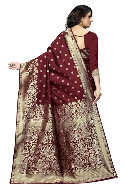 Elegant Banarasi Saree Soft Katan – Banarasi Buti Design – Matching Blouse Included | Rust