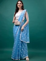 Be the first to review “Elegant Embroidered Saree Georgette Fabric – Lightweight Regular Wear with Minimal Border Work – Comes with Blouse | Firozi” Cancel reply