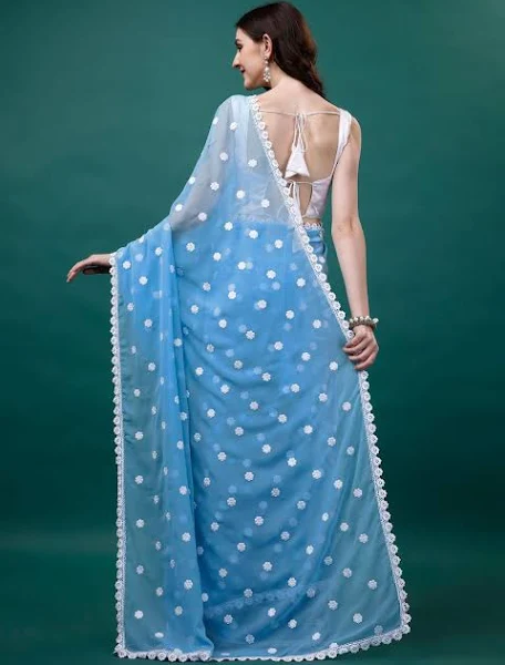 Elegant Embroidered Saree Georgette Fabric – Lightweight Regular Wear with Minimal Border Work – Comes with Blouse | Firozi