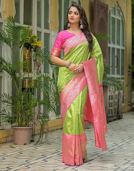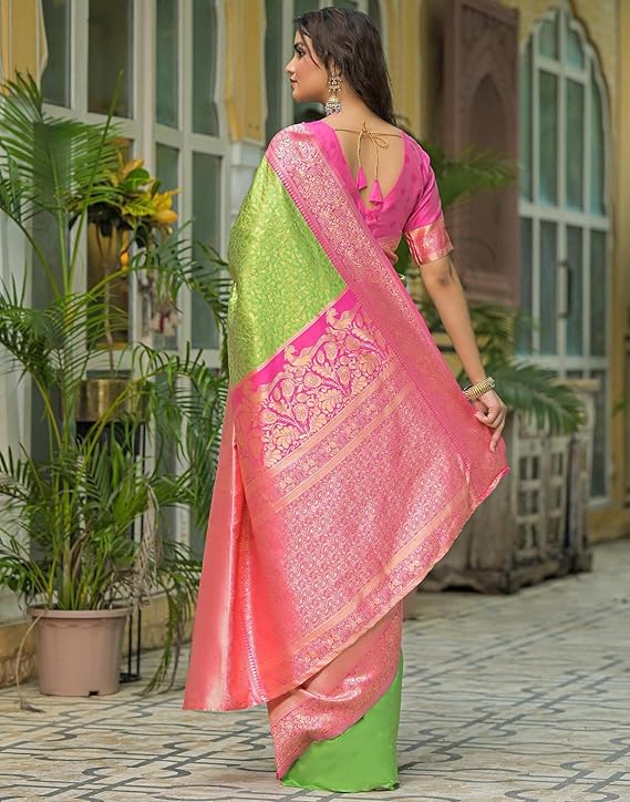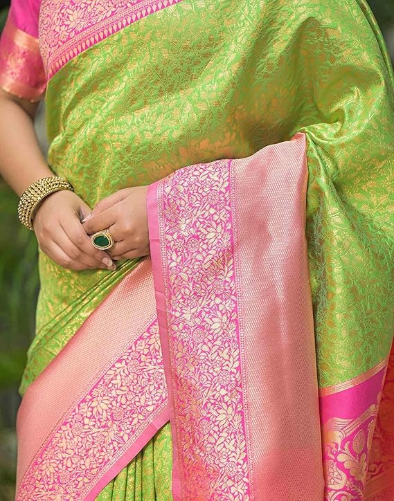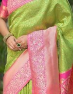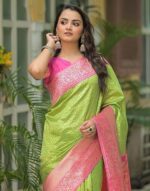 Elegant Embroidered Saree Organza Fabric – Party Wear with Fancy Jaal Work – Blouse Piece Included | Parrot Green
