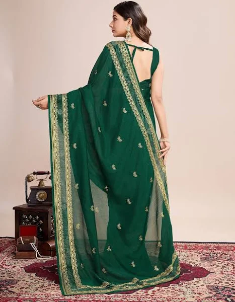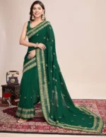 Elegant Embroidered Saree – Traditional Regular Wear with Border & Allover Work – Blouse Included | Green