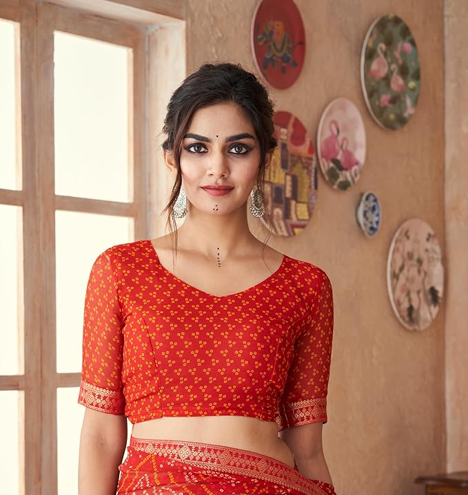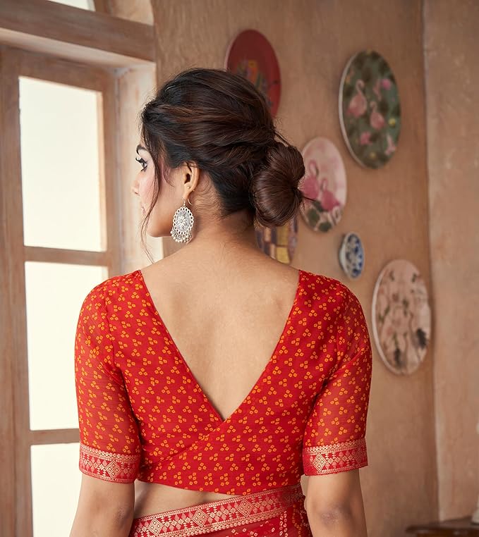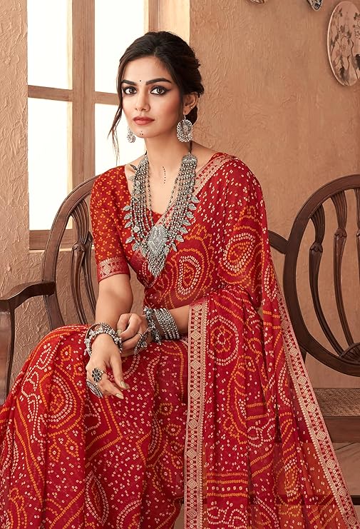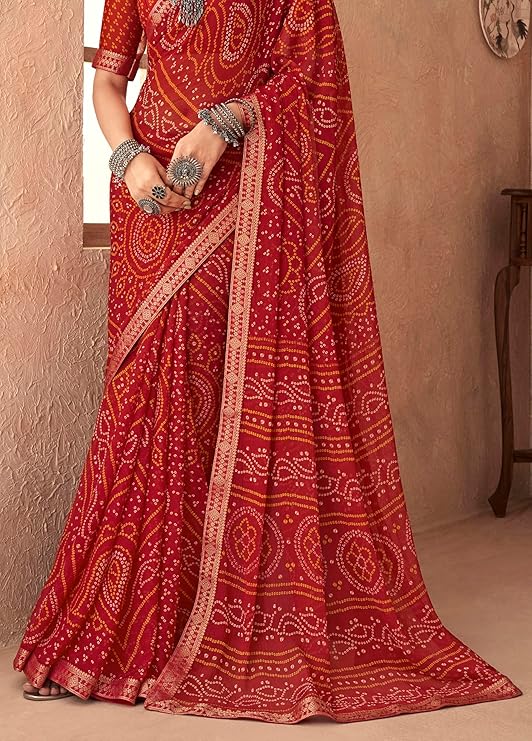 Fashion Women’s Chiffon Fancy Bandhani Printed Saree With Blouse Piece, Saree for Women, Sarees for Wedding (25802, Unstitched Blouse Piece)