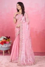 Be the first to review “Glamorous Swarovski Border Saree Satin Fabric – Elegant Regular Wear with Sparkling Border & Allover Detailing – Matching Blouse Included | Baby Pink” Cancel reply