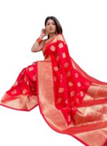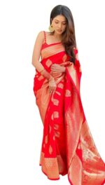 Be the first to review “Gorgeous Embroidered Saree Organza Fabric – Party Wear with Minimal Border – Matching Blouse Included | Red” Cancel reply