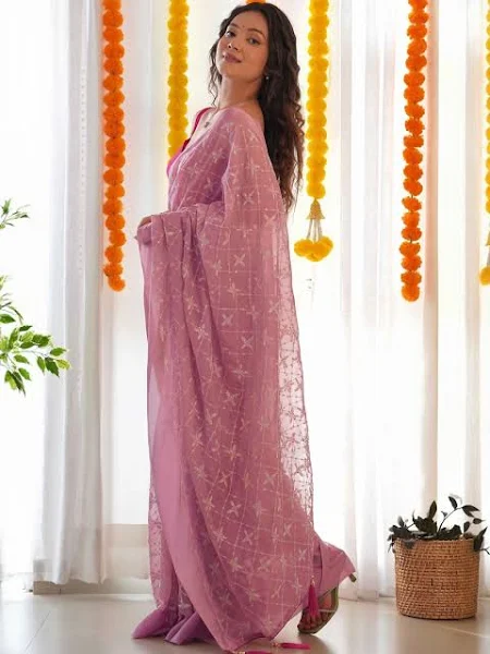 Be the first to review “Graceful Embroidered Saree – Regular Wear with Border & Allover Embroidery – Matching Blouse Included | Onion Pink” Cancel reply