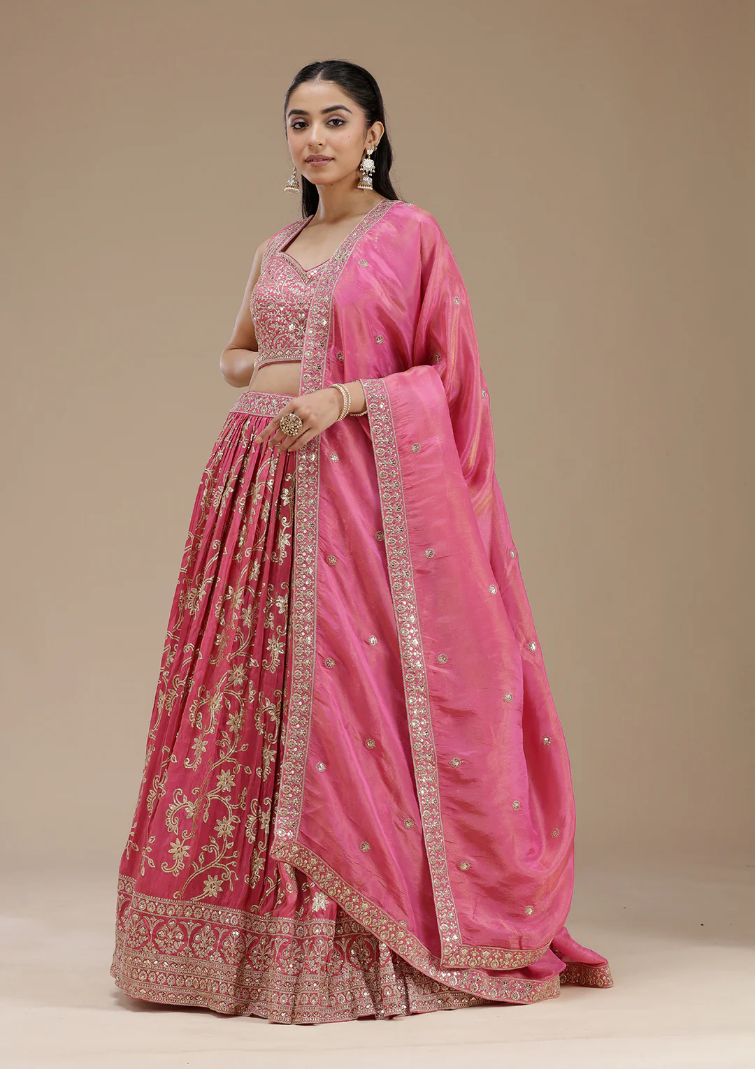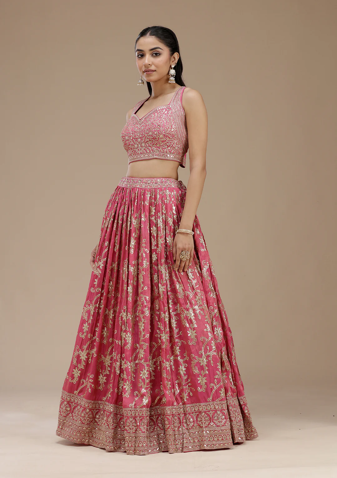 Magenta Pink Sequins Shimmer Readymade Lehenga