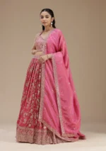 Magenta Pink Readymade Lehenga in Shimmer fabric. The Lehenga is embellished with Sequins embroidery. Accompanied with an Readymade blouse and dupatta. Comes with the Koskii promise of premium quality.