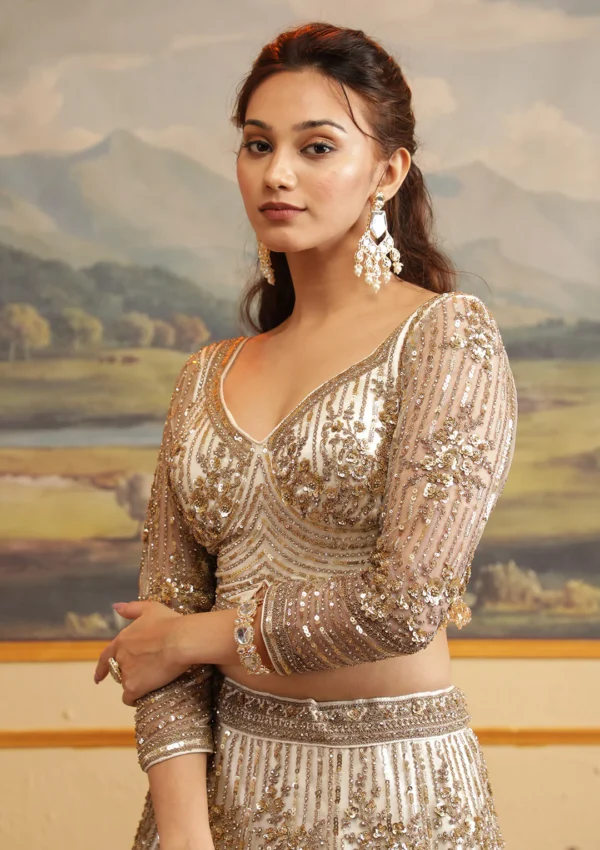 Off White Zari work Net Readymade Lehenga