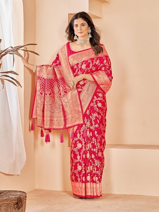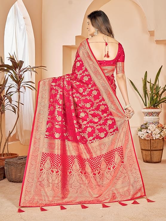 Mehrang Cotton Banarasi Silk Saree for Women With Unstitched Blouse Piece