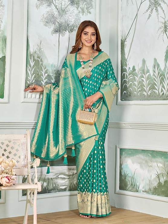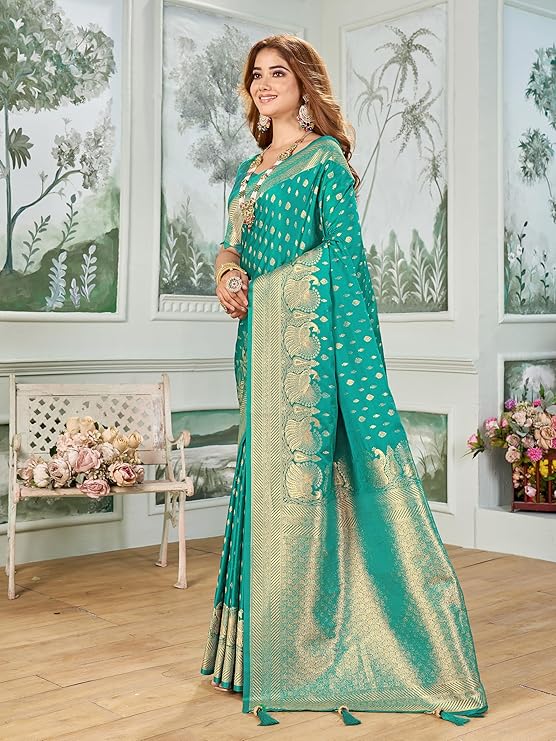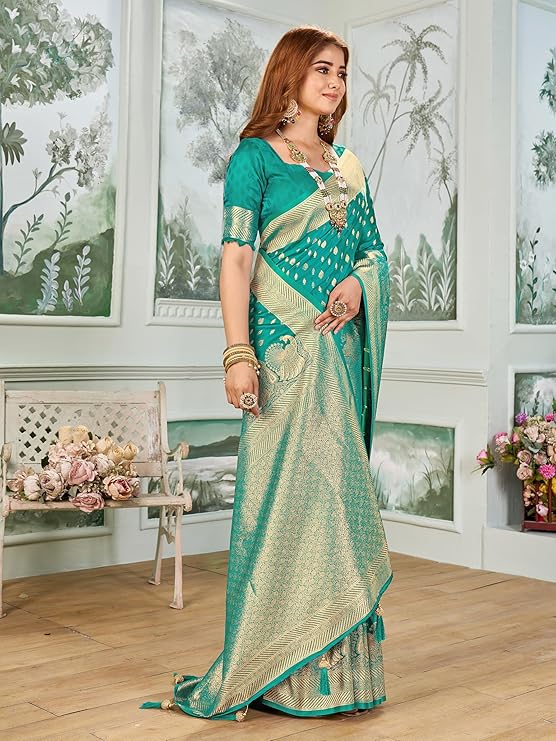 - Saree Details || Saree Fabric :- Silk Blend |Saree Pattern :- Woven | Saree Length :- 5.5 Meter | Saree Color : Rama Green