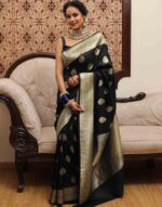 Be the first to review “Premium Banarasi Saree Soft Katan – Banarasi Jaal Design – Includes Blouse Piece | Black” Cancel reply