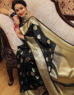 Premium Banarasi Saree Soft Katan – Banarasi Jaal Design – Includes Blouse Piece | Black