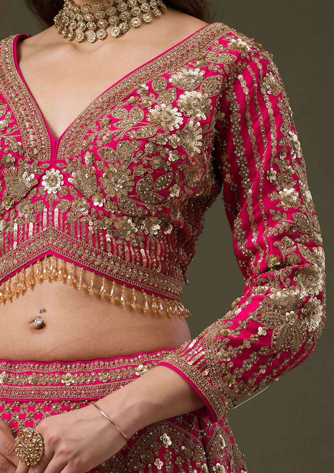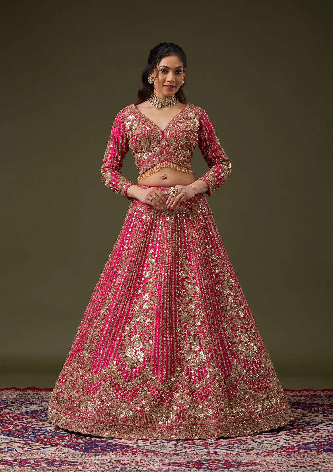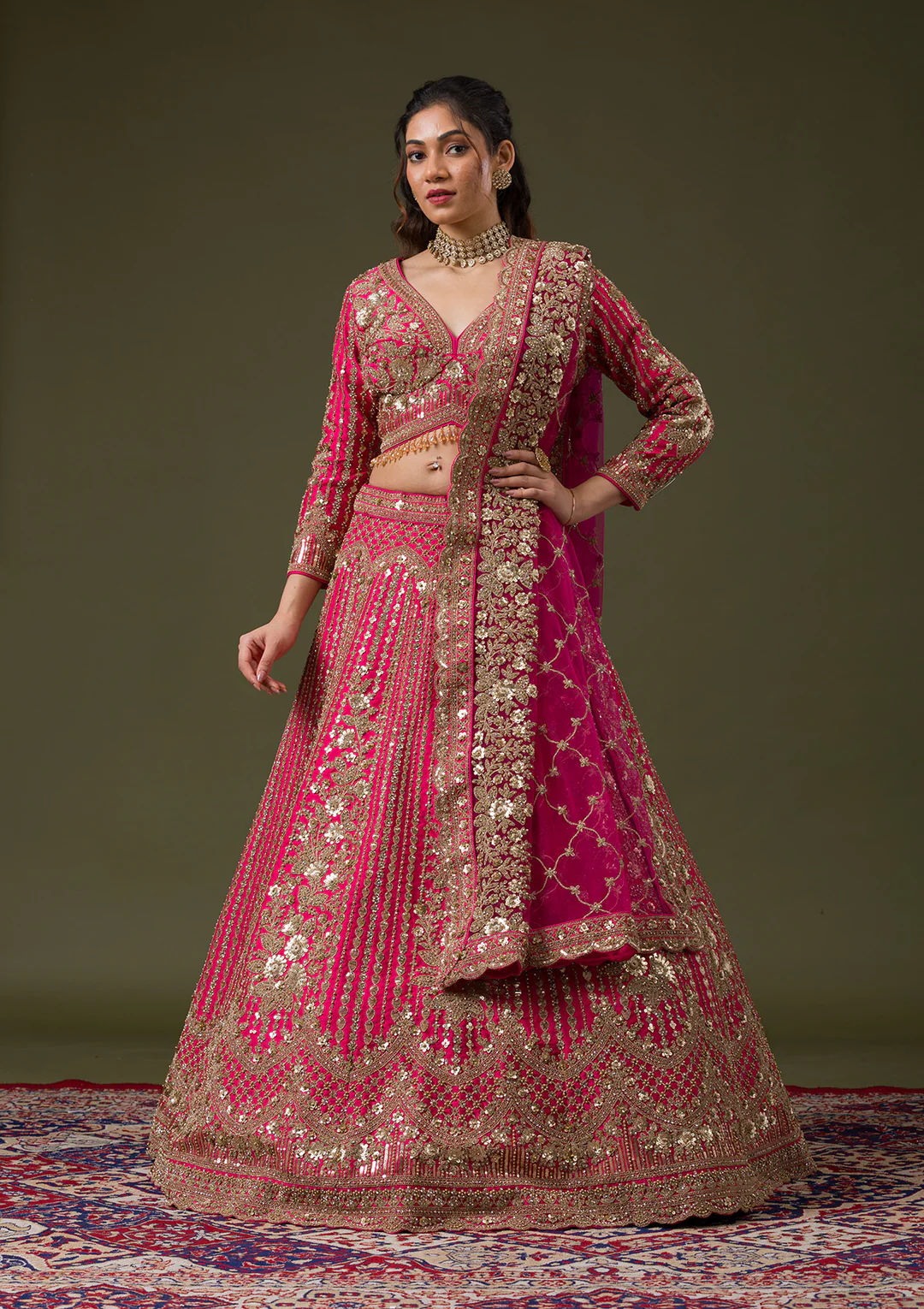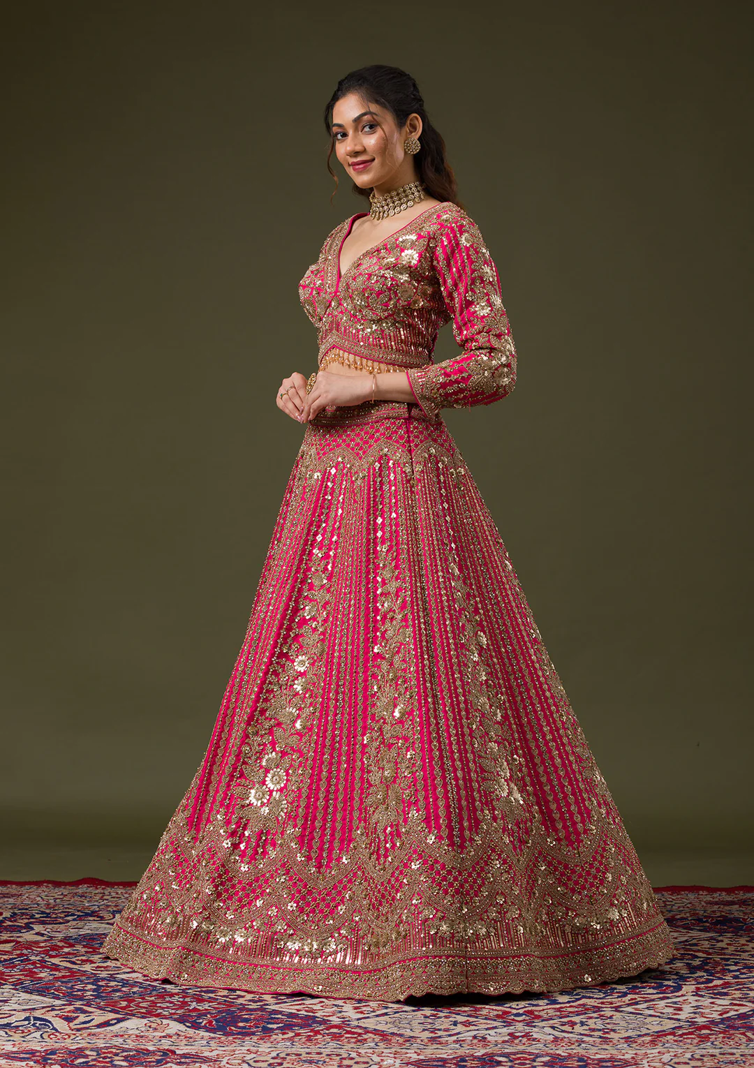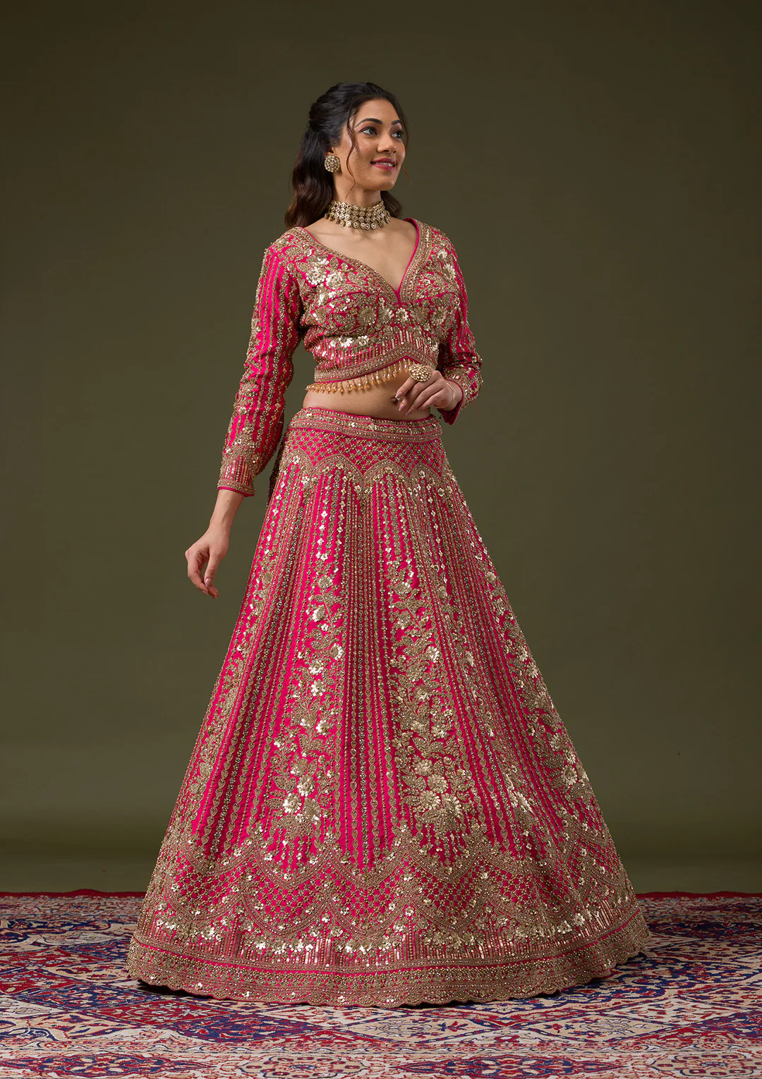 Magenta Pink Sequins Shimmer Readymade Lehenga