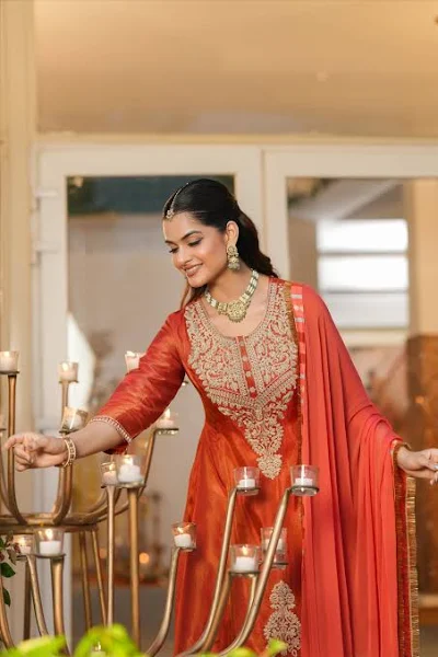 Shimmer Tissue Silk Embroidered Anarkali Suit Set