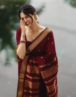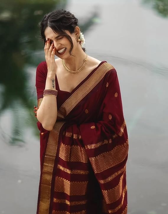 - Saree Details : Saree Fabric: Silk| Blouse Fabric: Silk | Saree Work: Jacquard Weaving | Blouse Work: Weaving Border| Saree Color: Maroon| Blouse Color: Maroon, Golden