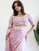 Wrap yourself in the vivacity of this multicolored printed satin saree, where each pleat gleams with exquisite swaroski work. Woven from the finest satin, it glides effortlessly, enhancing your grace with every movement. Designed for standout moments, this saree invites you to express your unique style at any celebration or special event. It comes with an unstitched blouse for personalized tailoring. Please note, the blouse worn by the model is for shoot purposes only and not included. Disclaimer: Product color may slightly vary due to lighting conditions in the sample images.