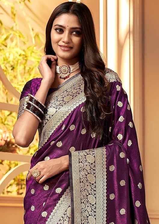 Be the first to review “Trendy Embroidered Saree – Graceful Regular Wear with Fancy Jaal Pattern – Matching Blouse Provided | Purple” Cancel reply